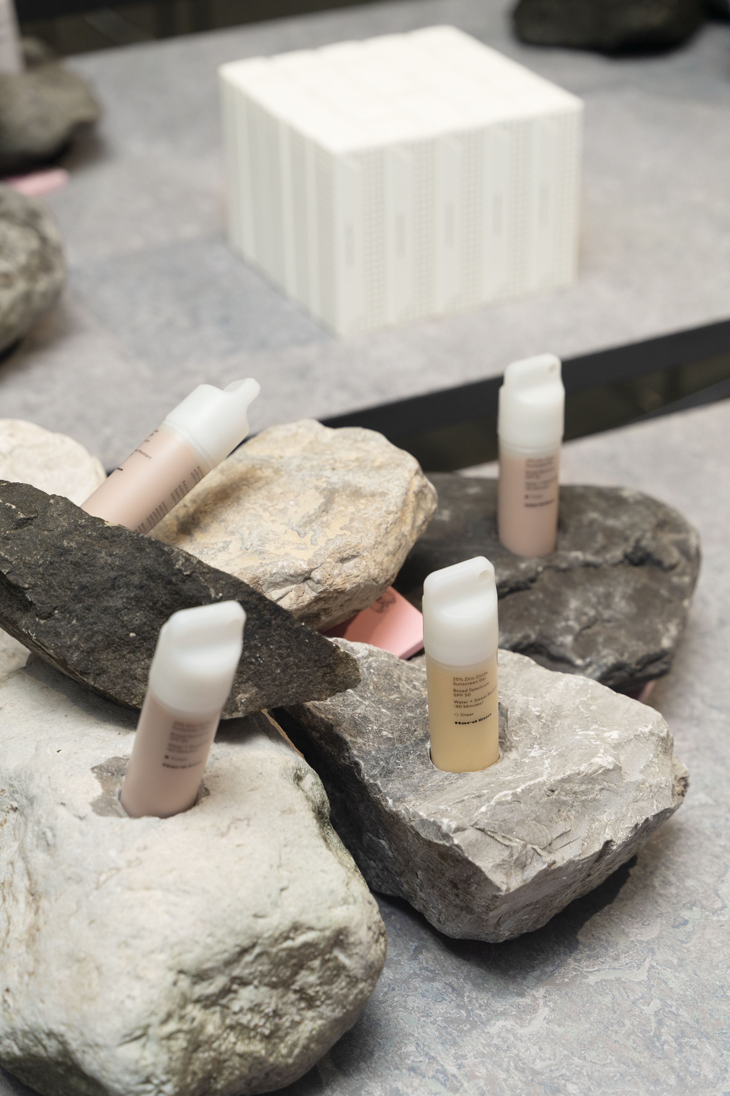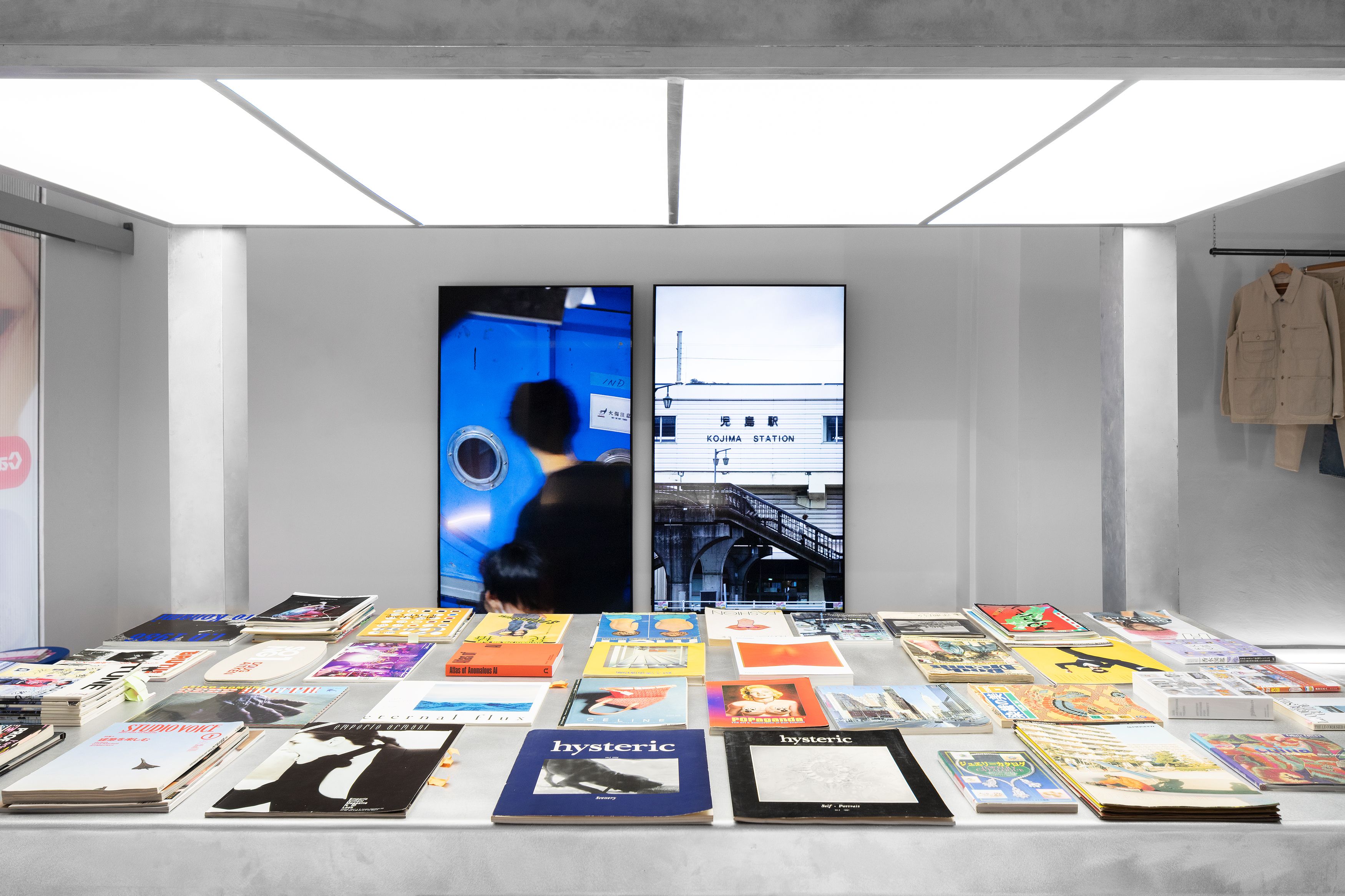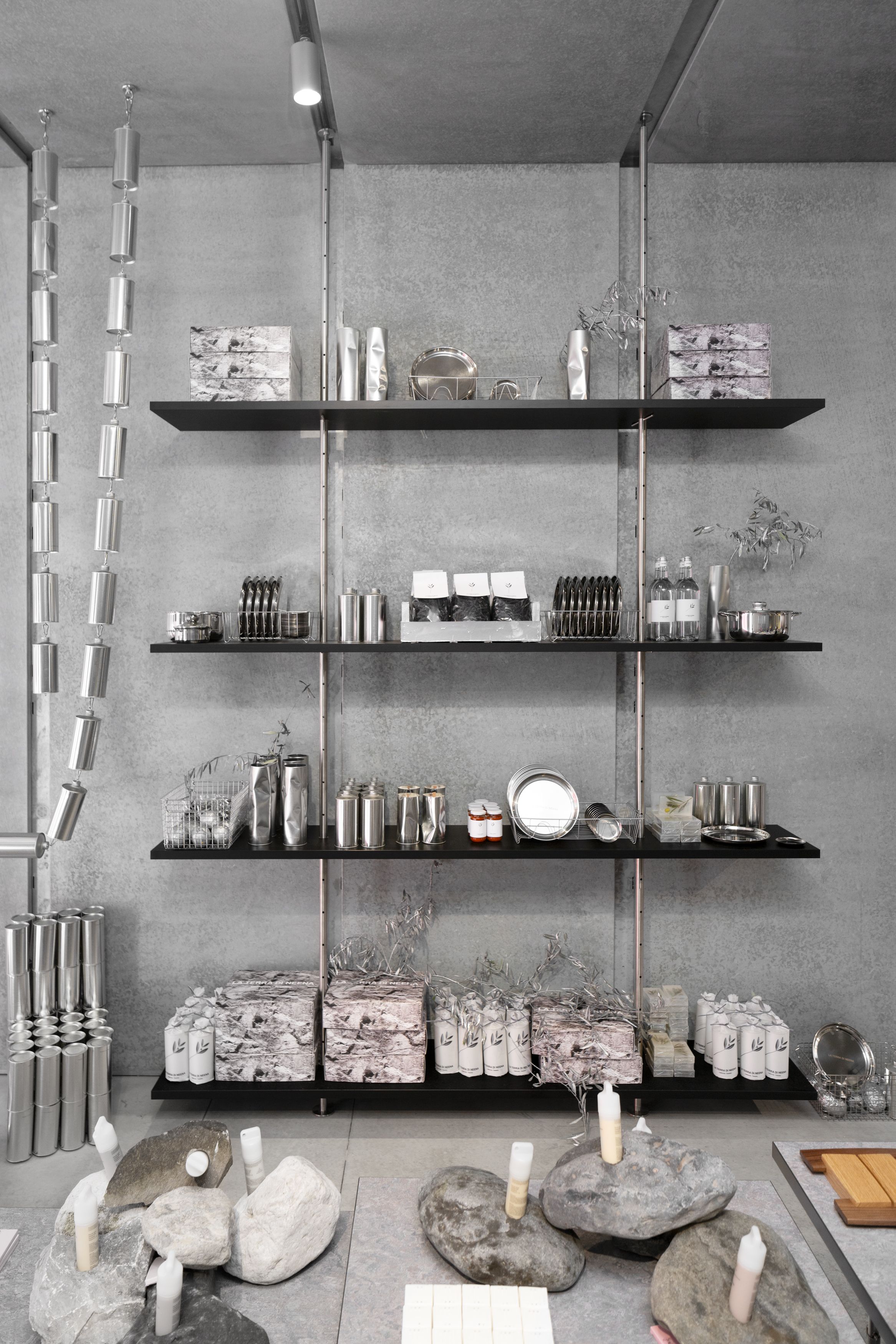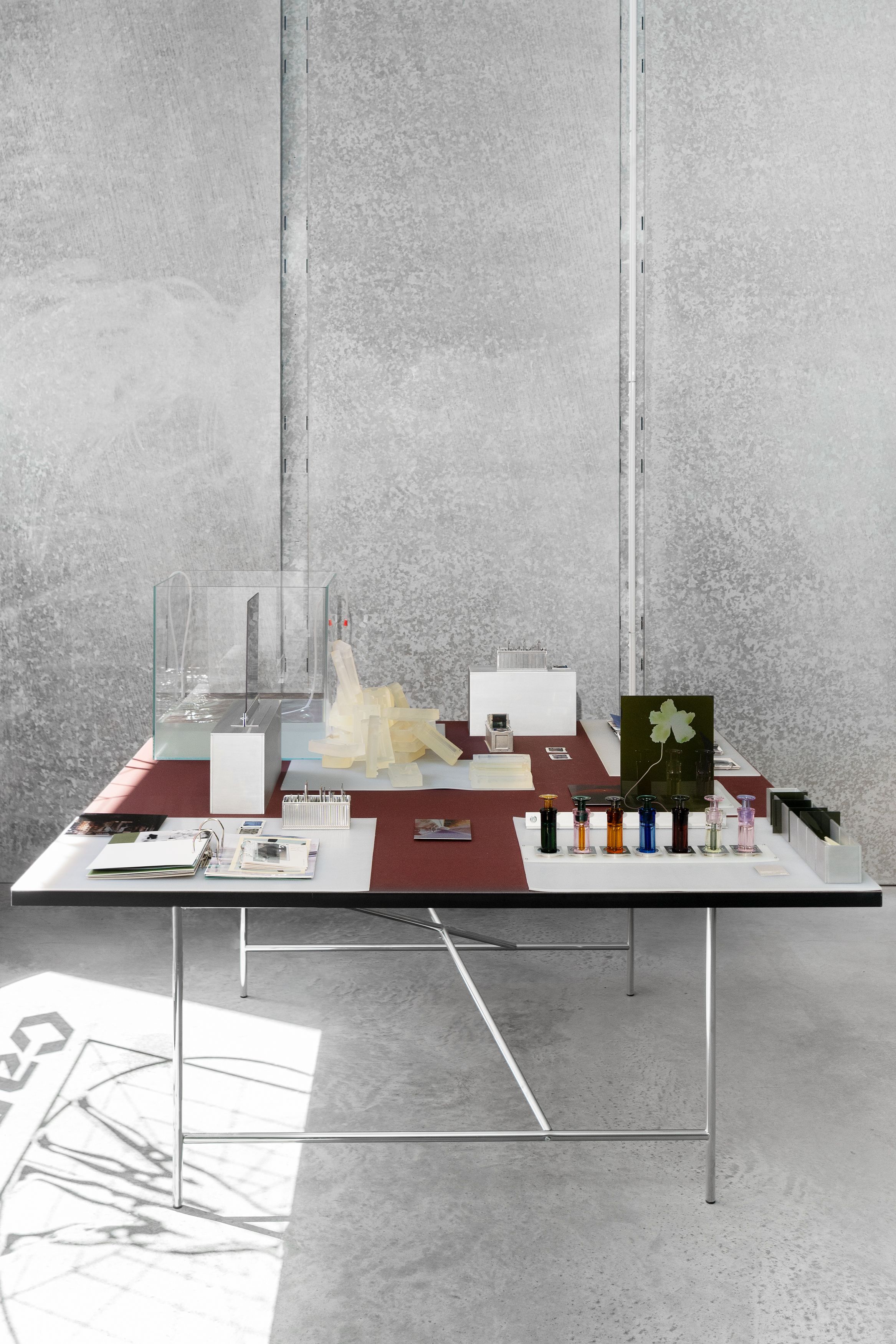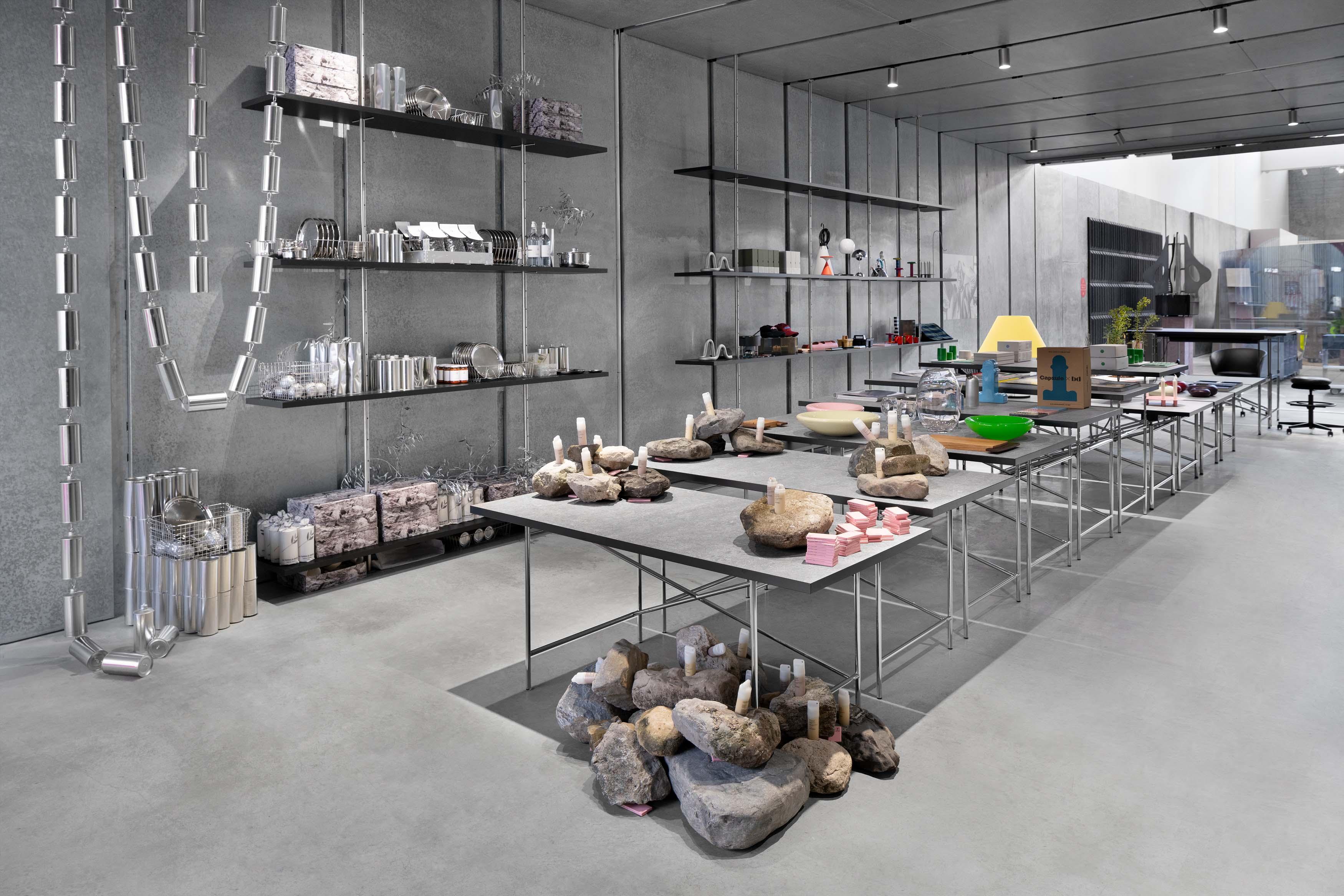 Inspired by archive depots as well as museographic displays, a monolithic showcase of Hem’s most iconic furniture designs occupies the main space, shedding light on the company’s creative interplay with some of the most important designers of our generation—including Max Lamb, Kwangho Lee, Sabine Marcelis, Soft Baroque, and Faye Toogood.