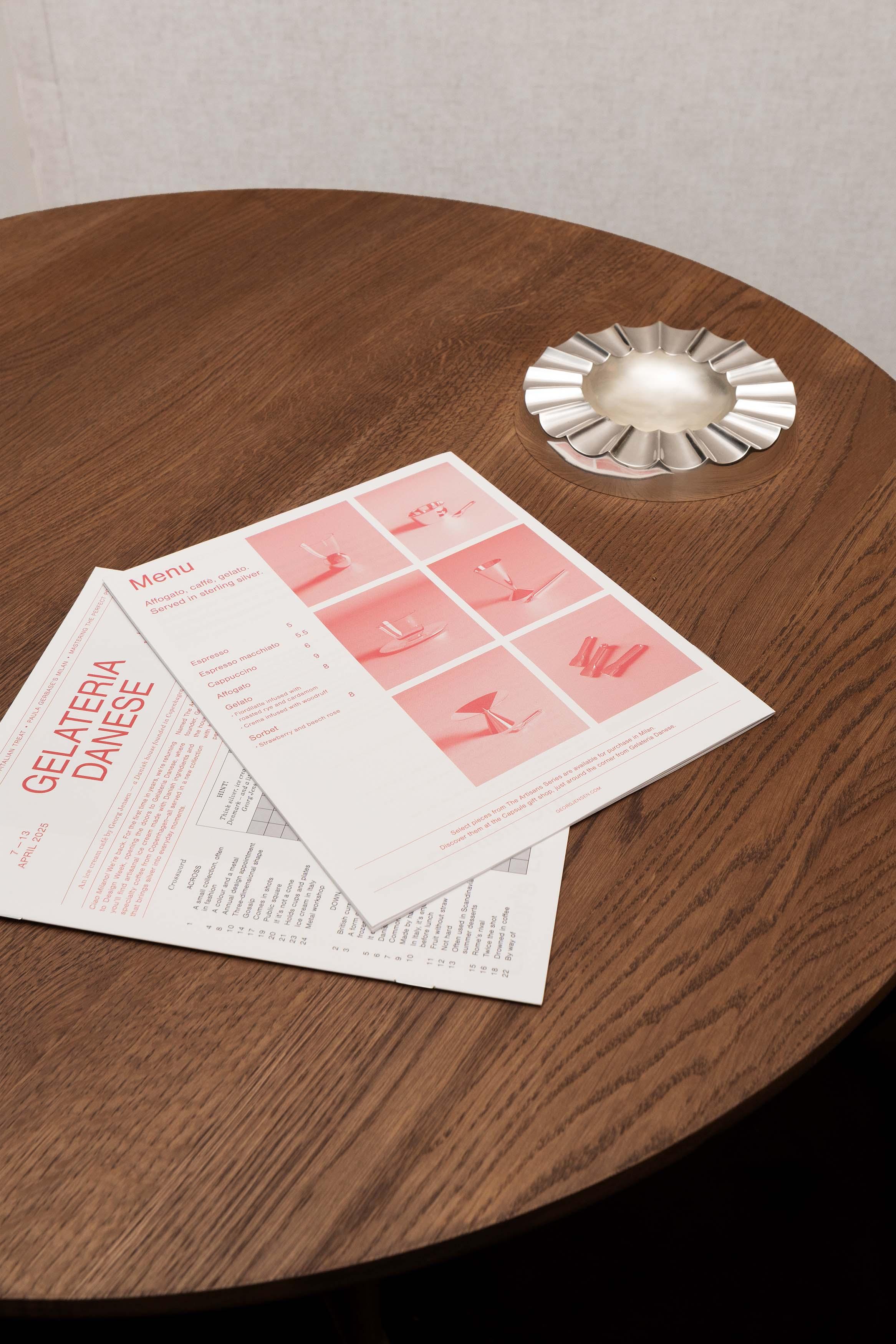 Founded in Copenhagen in 1904, Georg Jensen is a heritage Danish design house rooted in its founder’s curious spirit and dedication to craft. Under the Creative Direction of Brazil-born London-based designer Paula Gerbase, they present Gelateria Danese, a pop-up ice cream café designed to showcase the beauty and quality of silver. The collection brings the material into everyday rituals, removing it from its pristine perceptions. The café will serve artisanal Danish ice cream made with ingredients specific to Scandinavia, and developed in collaboration with Copenhagen-based, Italian-born chef Chiara Barla, as well as coffee from Copenhagen‘s Prolog, a Copenhagen specialty roastery. The new silverware collection is inspired by the geometric shapes and forms of 1920s Art Deco design language, paying tribute to one of the most influential design periods of the 20th century while reviving Georg Jensen’s signature ability to infuse an element of surprise into his creations.