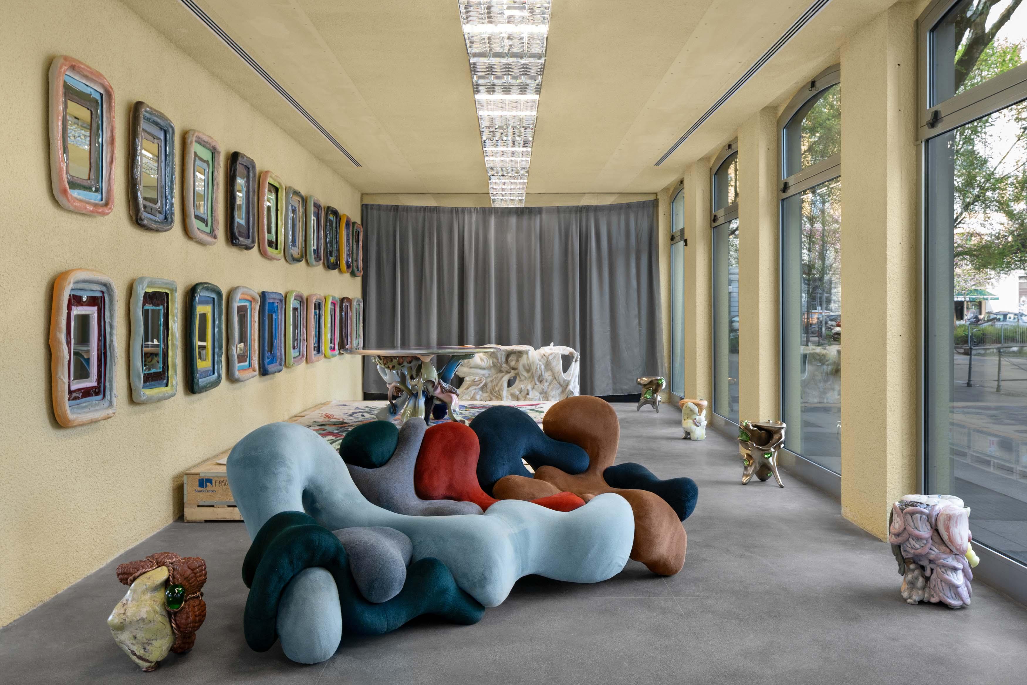 to present a selection of new pieces designed to inject spontaneity and non-conformity into the home. Presenting Azimuth, a sprawling grid of colorful mirrors, and Euphausiids Delight (Final Moments), a center table inspired by the rich interplay of marine crustaceans.