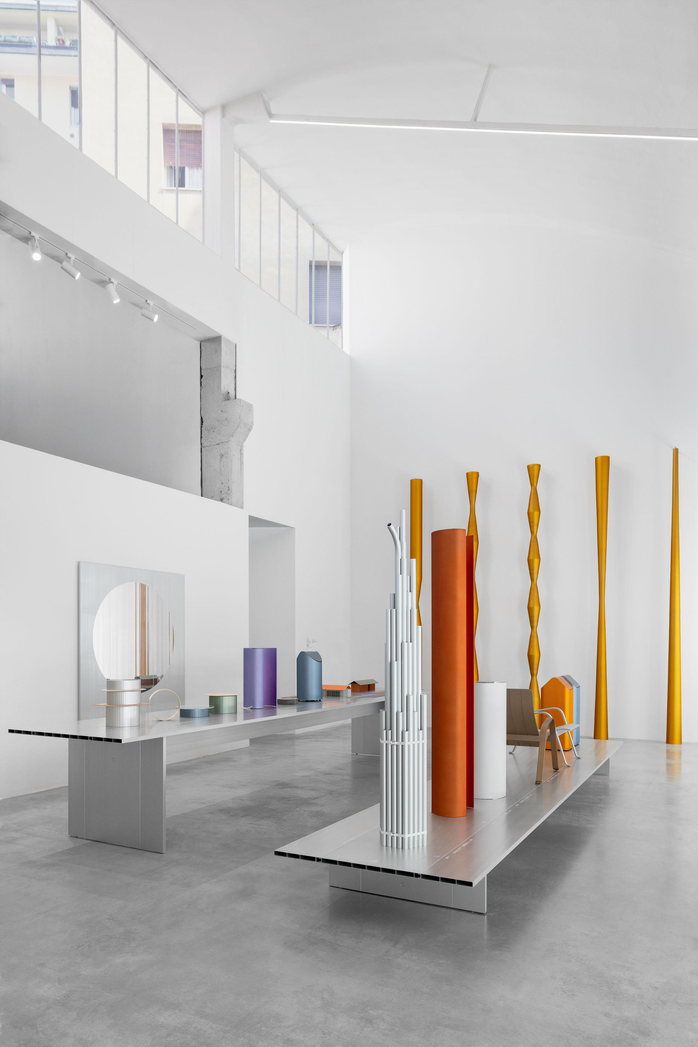 After launching the world’s first industrial-scale 100% post-consumer aluminium last year, Hydro broadens its focus for their 2025 presence at Capsule Plaza, shifting its attention to transportation emissions. For “R100”, Hydro brings to life new works created totally within a self-imposed limit of a 100 km radius of Milan, from locally sourced post-consumer scrap to finished design objects. The designers—all unaware of the 100 km production radius when designing—were offered complete freedom by Hydro with no limitations to extrusion press size, product size or typology, to ensure that the project mirrors a real-life use-case. The five designers for this project were selected for their distinct design expressions and complementary methodologies, resulting in a unique collection of mono-material aluminium products varying from home decor objects to chairs and furniture components. All products are made of Hydro CIRCAL 100R recycled aluminium.