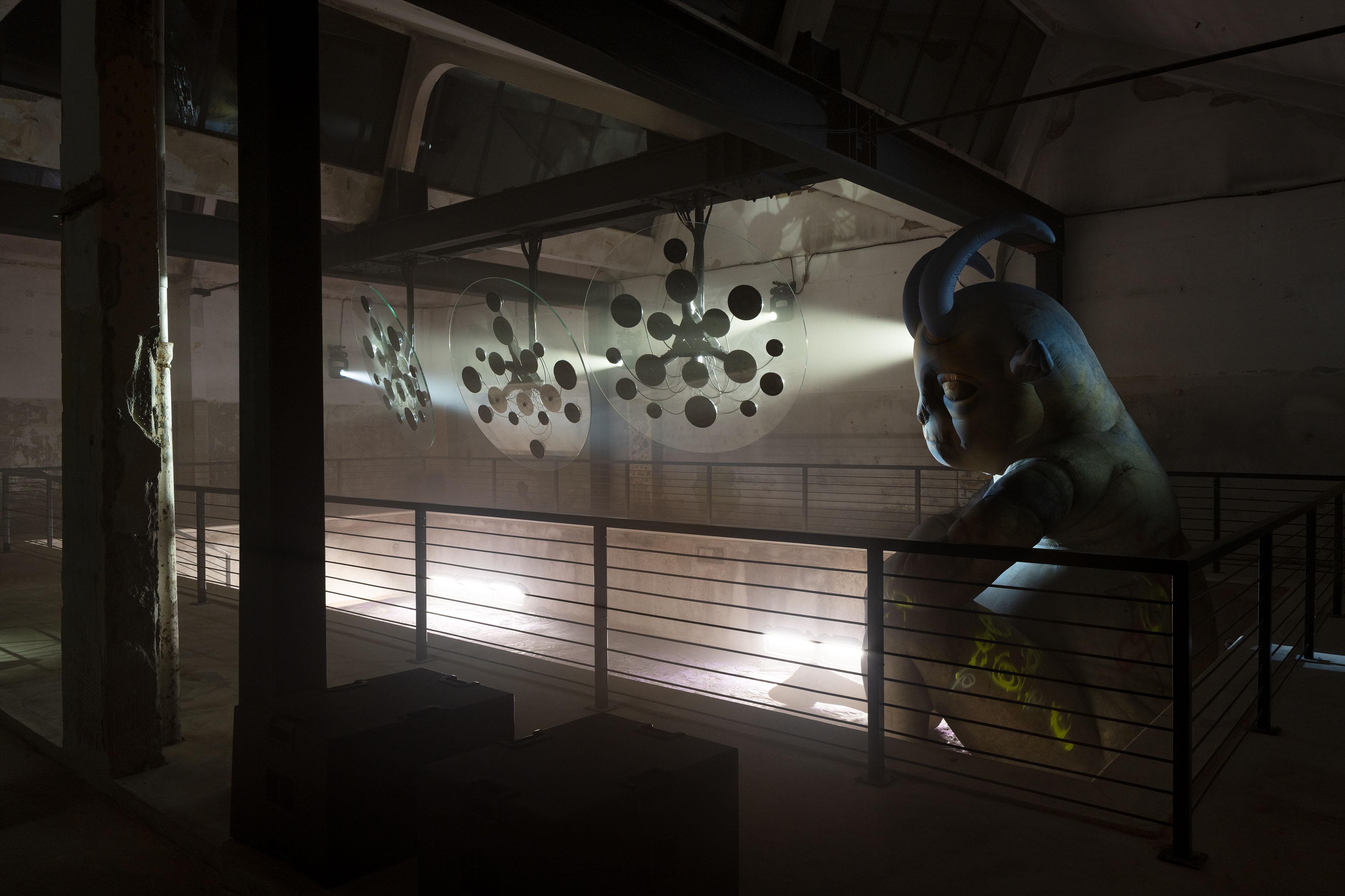 “The Suspended Hour,” a spatial intervention that explores club culture as a sacred space, reimagining its ritualistic environment as a fragmented recollection of a night out. The installation, developed as a collabo- ration between PAN founder Bill Kouligas, and sub under the creative direction of Niklas Bildstein Zaar, unfolds as a memory-infused design— an ephemeral imprint, a topographical map of movement, a place where motion leaves lasting resonance. A custom sonic sculpture plays a one-hour composition by Bill Kouligas that unfurls as visitors encounter the emotional phases of a club night— taking us through feelings of anticipation, discovery, euphoria, twilight, and solitude—as the sonic composition, spatial design, lighting, and atmosphere blur the line between memory and prophecy.